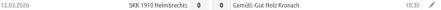 Nachholspiel 12. Spieltag