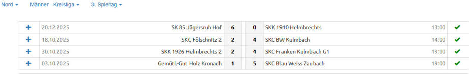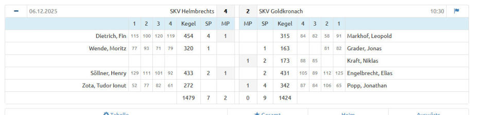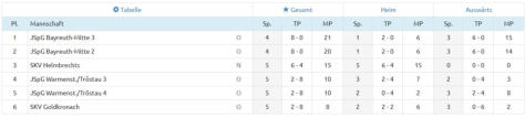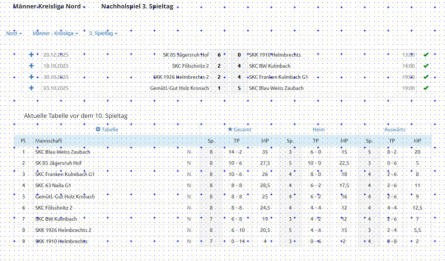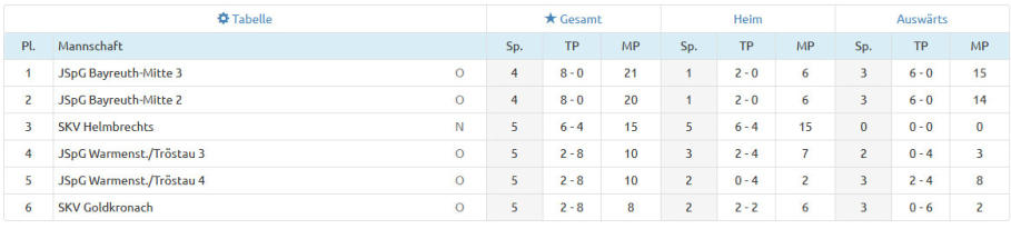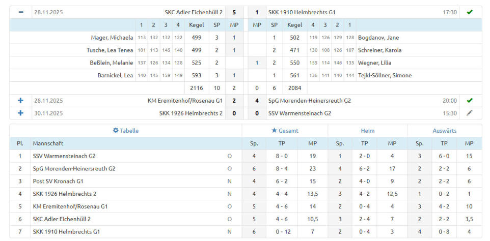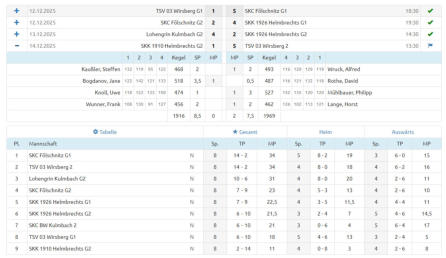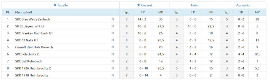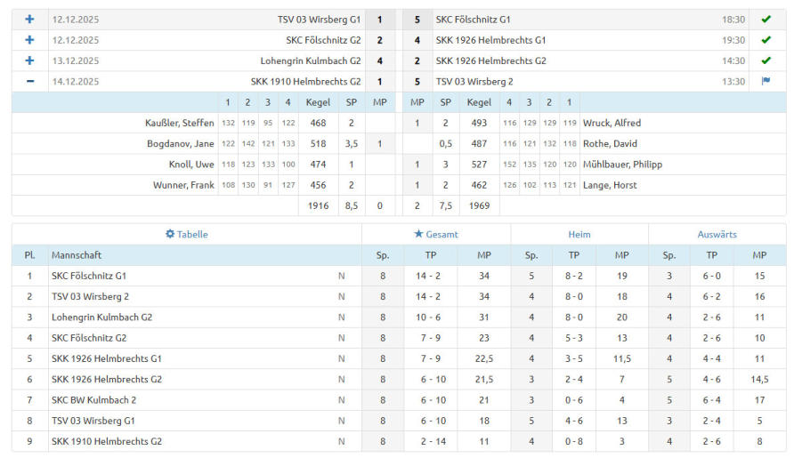 Aktuelle Tabelle 8. Spieltag - Stand 06.12.2025
